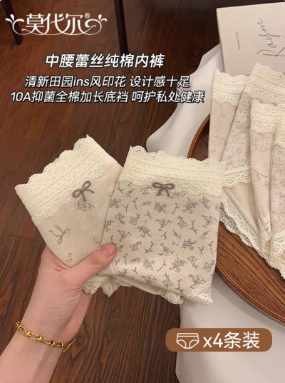 莫代尔内裤女棉档10A抑菌透气加长裆四季款少女内裤甜美4条装均码