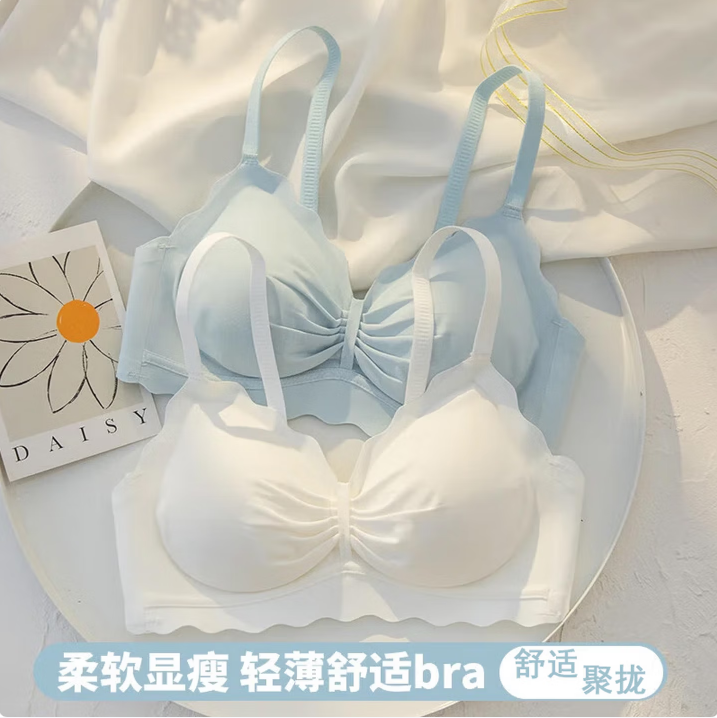 京日无痕内衣女小胸聚拢无钢圈收副乳学生少女防下垂夏季薄款文胸罩 香槟色2套