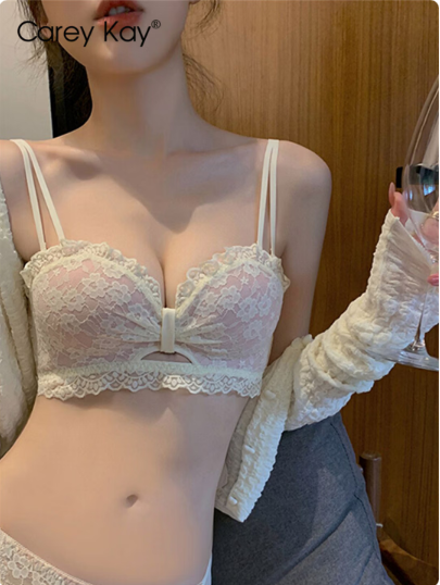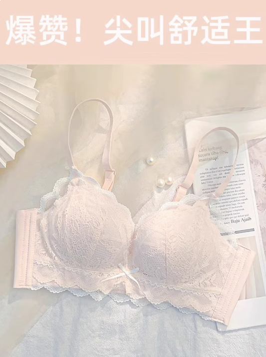 杰丽莫克小胸聚拢内衣加厚显大纯欲蕾丝少女胸罩上托无钢圈文胸套装送女友